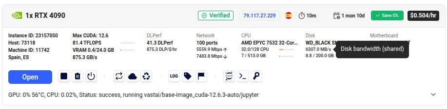 When you have found a suitable instance it’s time to click the ‘Rent’ button. This will start the loading phase.If you are not sure which instance to choose - Try one. There is no minimum rental period and if it is not suitable you are able to destroy that instance and start another, paying only for the time the instance was in the ‘running’ state